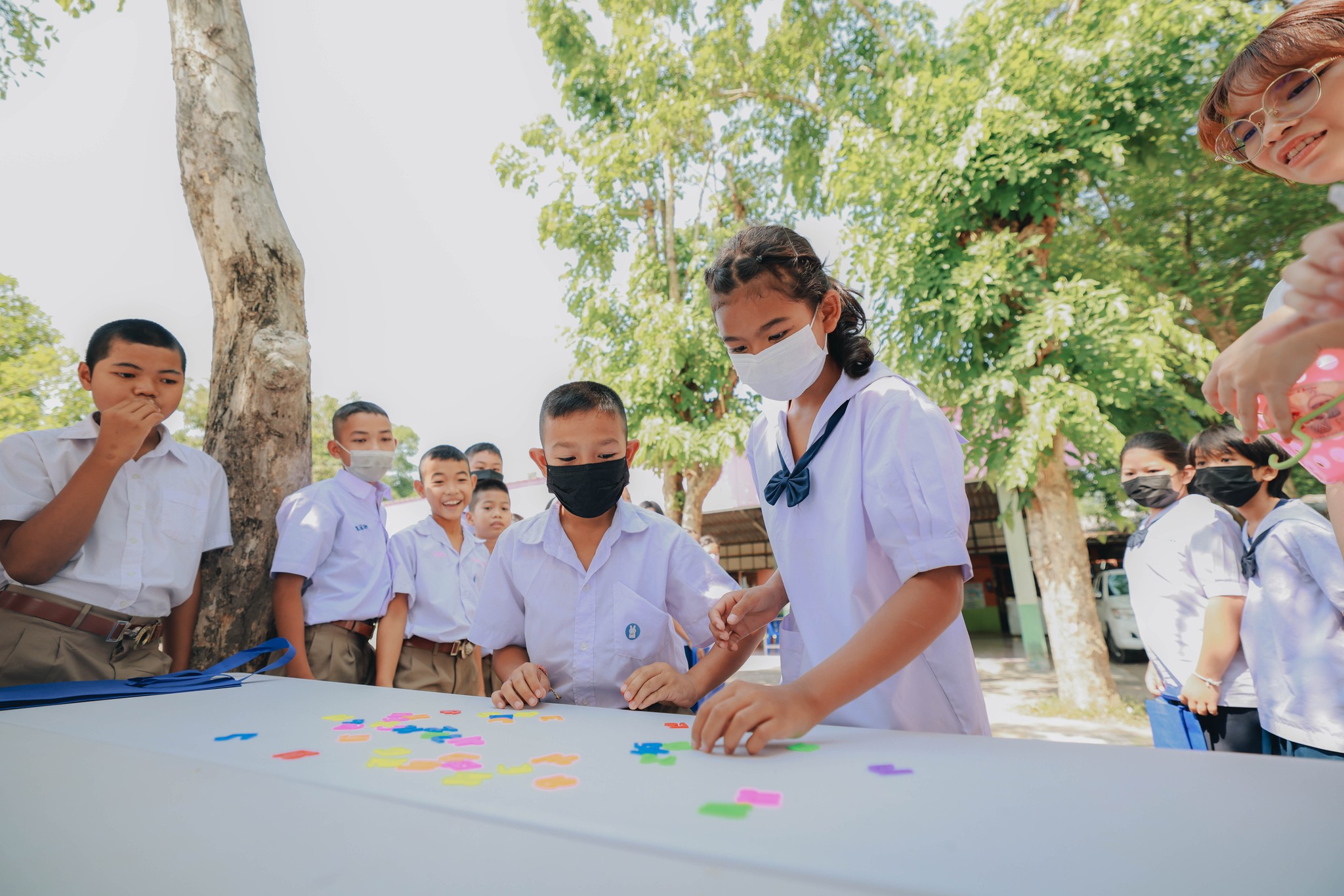 แถมยังช่วยนำสื่อการเรียนรู้ไปติดตามห้องเรียนต่าง ๆ และมอบสิ่งของที่จำเป็นในการเรียนของน้อง ๆ ไม่ว่าจะเป็น โปสเตอร์ให้ความรู้ อุปกรณ์กีฬา หนังสือ และสิ่งของอื่น ๆ อีกมากมาย